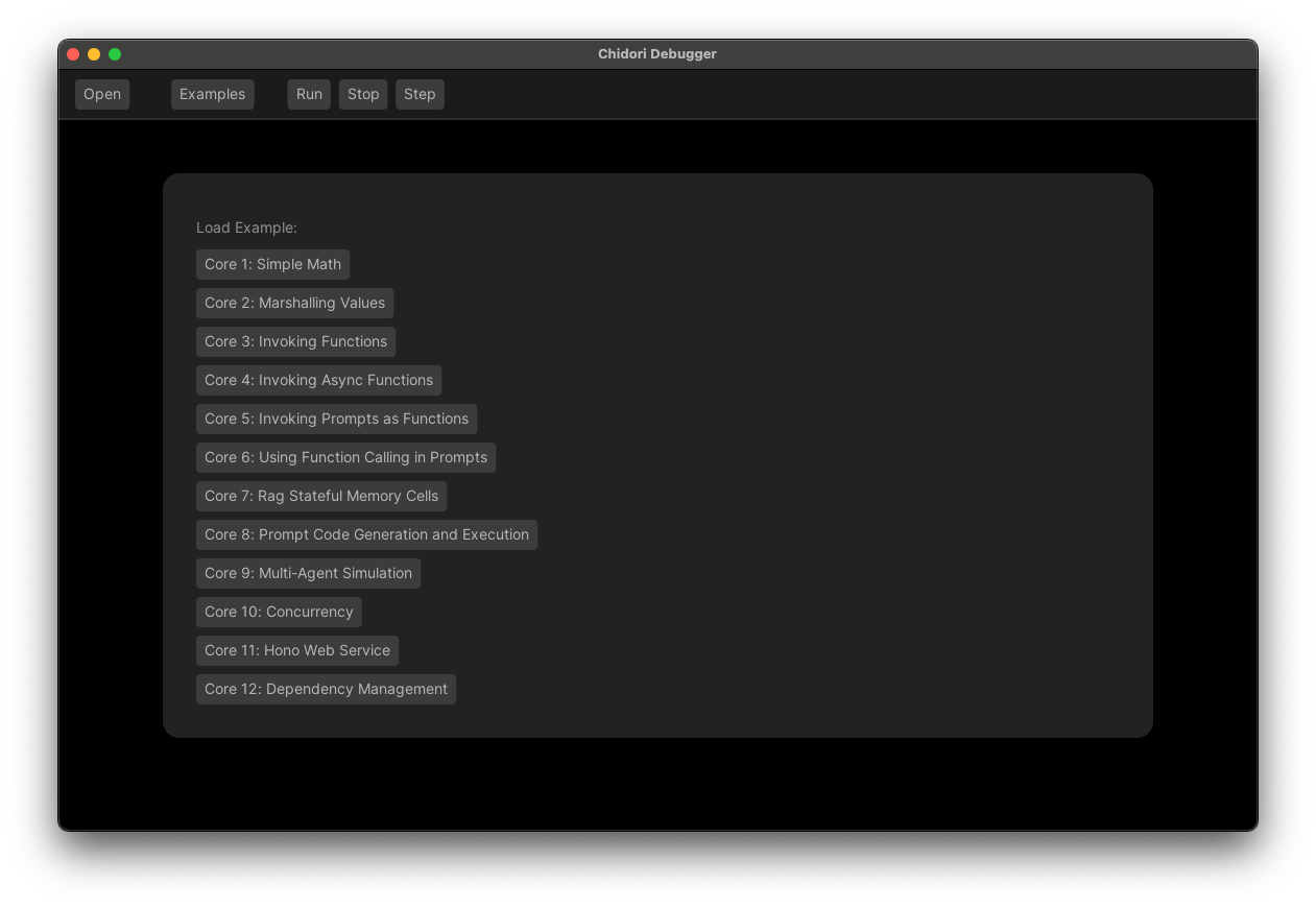 The recommended way to interact with Chidori is by using our interactive debugger. The debugger is a Rust application that you can install from our GitHub HERE or using cargo install chidori-debugger.